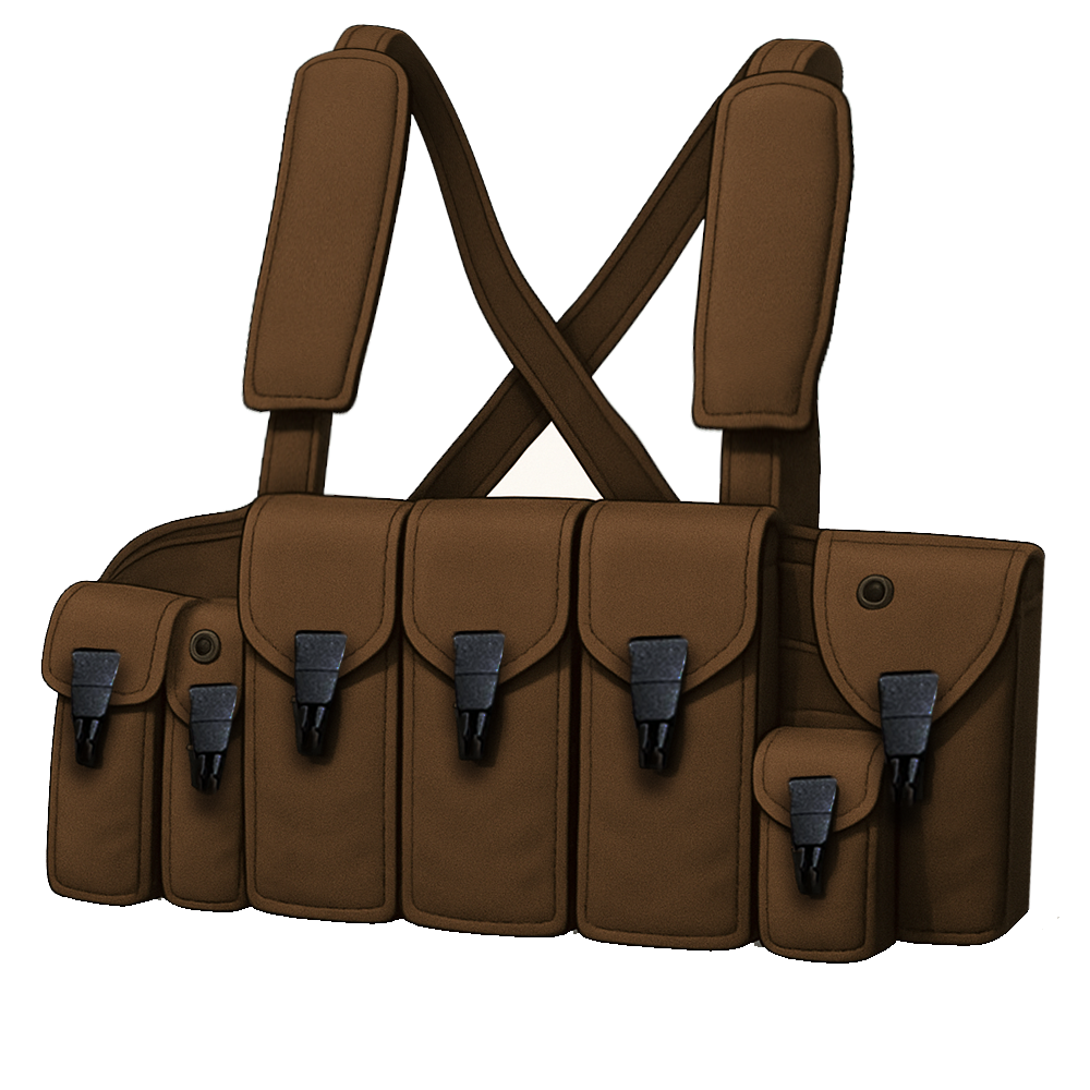 Chest Rig: Private purchase “PARAFOX” manufactured Chest Rig - patterned similar to the later South African Defence Force Pattern 83 Chest Rig, it featured a full Nylon construction and a unique left-side holster pouch for quick access to a side arm. Apparently, due to the close quarters nature of the fighting, and the small trenches and fighting positions, the location of the pistol holster pouch came in handy, however unorthodox by modern standards. It additional had room for 6 magazines of 5.56mm ammunition for the R4 rifle, and 3 auxillary pouches for grenades and medical equipment.